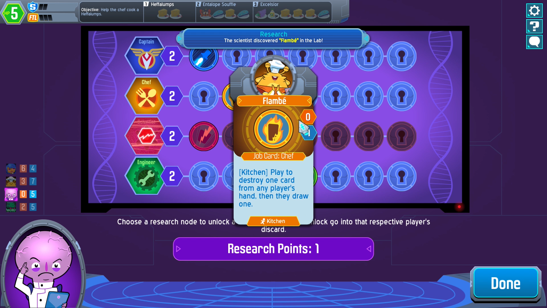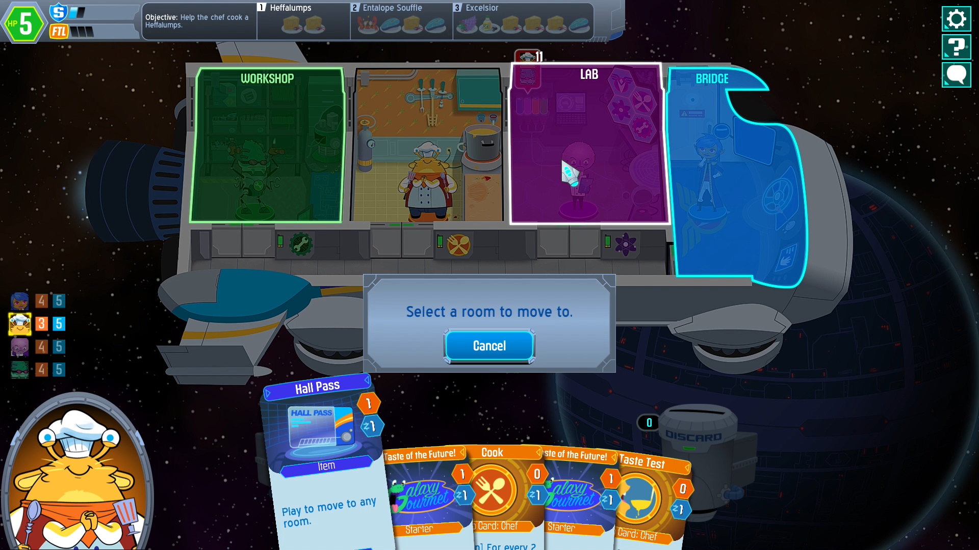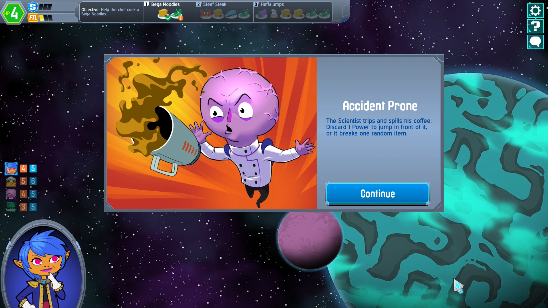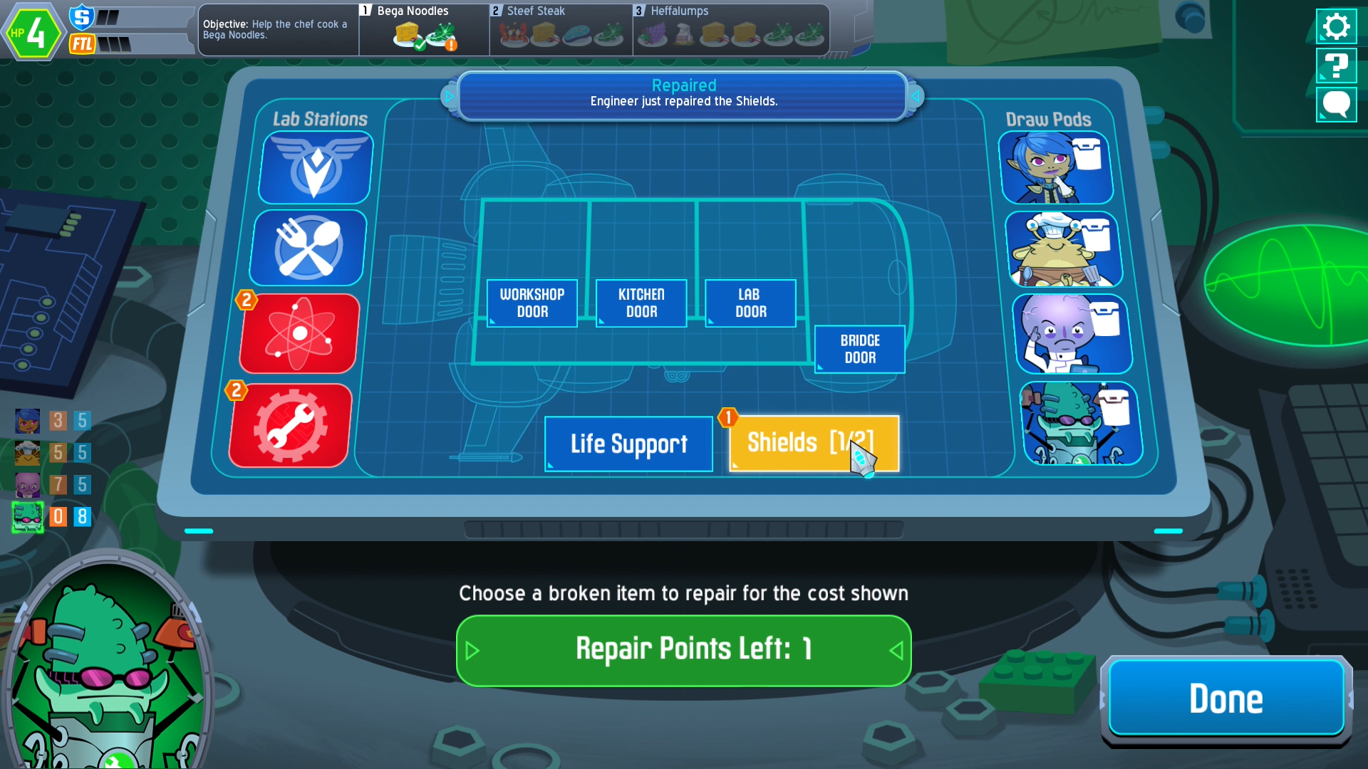 You start by picking one of four unique jobs on the food truck: Captain, Chef, Scientist, or Engineer. If you have less than 4 players, you’ll get to control more of the crew (or all of it if you choose to play alone).